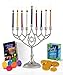 Zion Judaica Hanukkah Value Kit - Full Size Solid Menorah 44 Colored Candles Complete Hanukkah Guide Booklet 6 Colored Dreidels Sack of Milk Belgian Hanukkah Coins Gelt - All Essentials in 1 Box