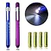 LED Penlight White Color Pen Light 2PCS Diagnostic Reusable with Pupil Gauge for Doctors Nurses, Durable Batteries Free, Blue and Purple