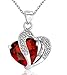 dhnewsun Rhodium Plated Silver Accent Heart Shaped Pendant Necklace(Red)