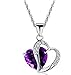 dhnewsun Rhodium Plated Silver Accent Amethyst Heart Shaped Pendant Necklace