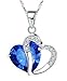 dhnewsun Rhodium Plated Silver Accent Heart Shaped Pendant Necklace(Royal blue)