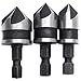 Dophee 3Pcs 5 Flute Countersink Drill Bit Set 1/4" Hex Shank 90¡ã End Chamfer Wood Tool