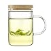 Emoi 15oz Teapot, Glass Brewing Tea Cup, Tea Infuser Mug, Premium Loose Leaf Flower Tea and Coffee Maker with Infuser Strainer, Bamboo Lid, Heat Resistant, Easy to Brew and Clean.(H1119)