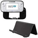 Skque® Black Durable Gamepad Console Vertical Stand Dock + Black Soft Silicone Skin Back Case Cover(for Nintendo Wii U Gamepad Remote Controller) for Nintendo Wii U
