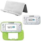 Skque® White Durable Gamepad Console Vertical Stand Dock + Ultra-clear Anti Scratch Screen Protector Guard + Green Soft Silicone Skin Back Case Cover(for Nintendo Wii U Gamepad Remote Controller) for Nintendo Wii U