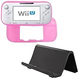 Skque® Black Durable Gamepad Console Vertical Stand Dock + Pink Soft Silicone Skin Back Case Cover(for Nintendo Wii U Gamepad Remote Controller) for Nintendo Wii U