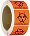 Roll Products 142-0011 Round Cornered Permanent Adhesive Biohazard Warning Label with Black Imprint, Legend "Biohazard" (with Logo), 2" Length x 2" Width, for Identifying and Marking, Fluorescent Red/Orange (Roll of 500)