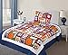 Mi Zone Kids Little Foot Twin Bedding Sets Boys Quilt Set - Grey, Blue, Orange , Dinosaur – 3 Piece Kids Quilt For Boys – Cotton Filling Ultra Soft Microfiber Quilt Sets Coverlet