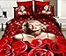 Ttmall Full Size 4-pieces 3d Gray White Marilyn Monroe Red Rose Flowers Floral for Girls Printed Duvet Cover Set(full,1duvet Cover+1flat Sheet+2pillowcases)