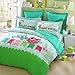 LOVO KID'S Best Friends Owl 100% Cotton 4-Piece Bedding Set Duvet Cover Fitted Sheet 2x Shams Twin