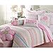 MakeTop Flowers Girls Colorful Stripe Quilt Sets, 2pc Full