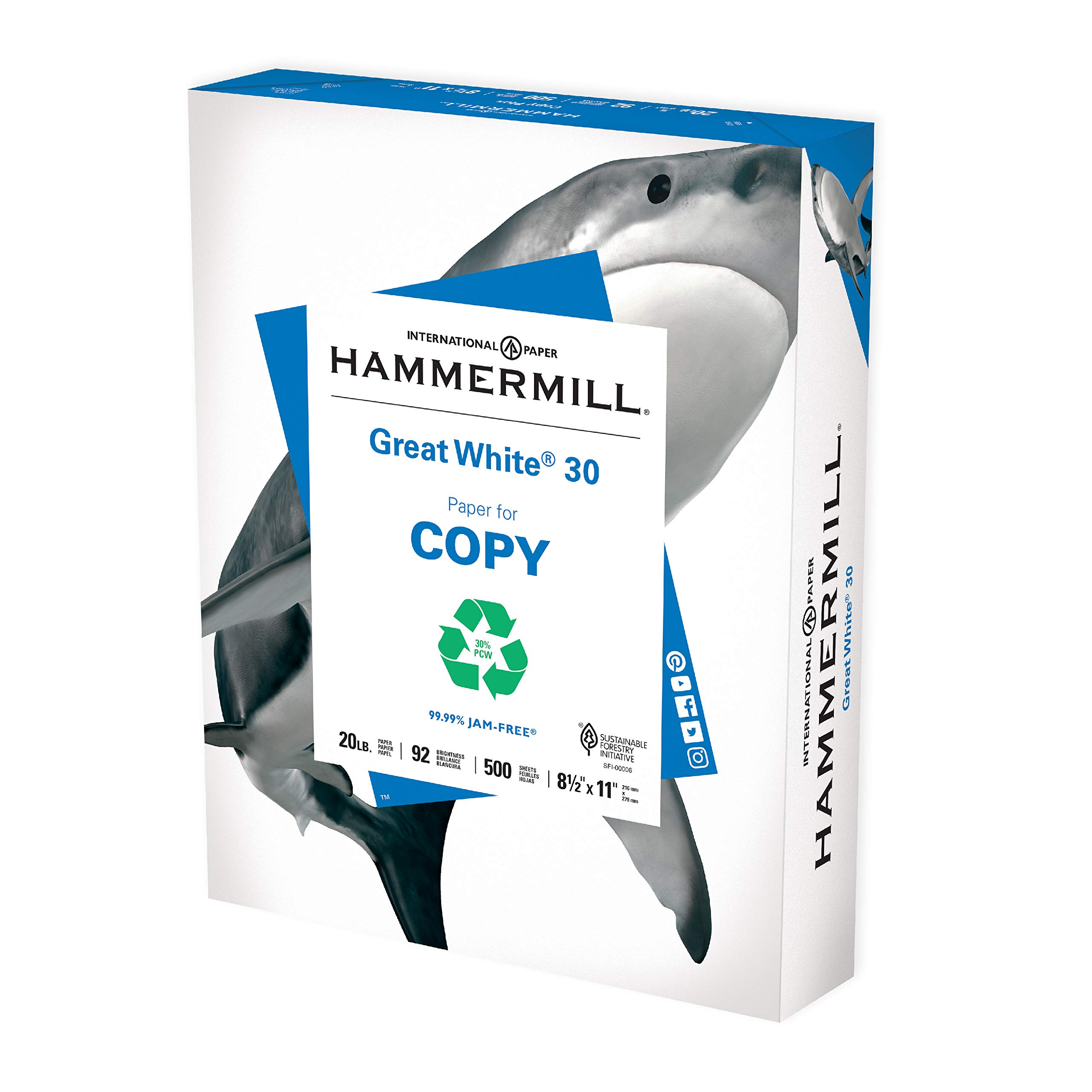 Hammermill Printer Paper, Great White 30% Recycled Paper, 8.5 x 11-1 Ream (500 Sheets) - 92 Bright, Made in the USA, 086710