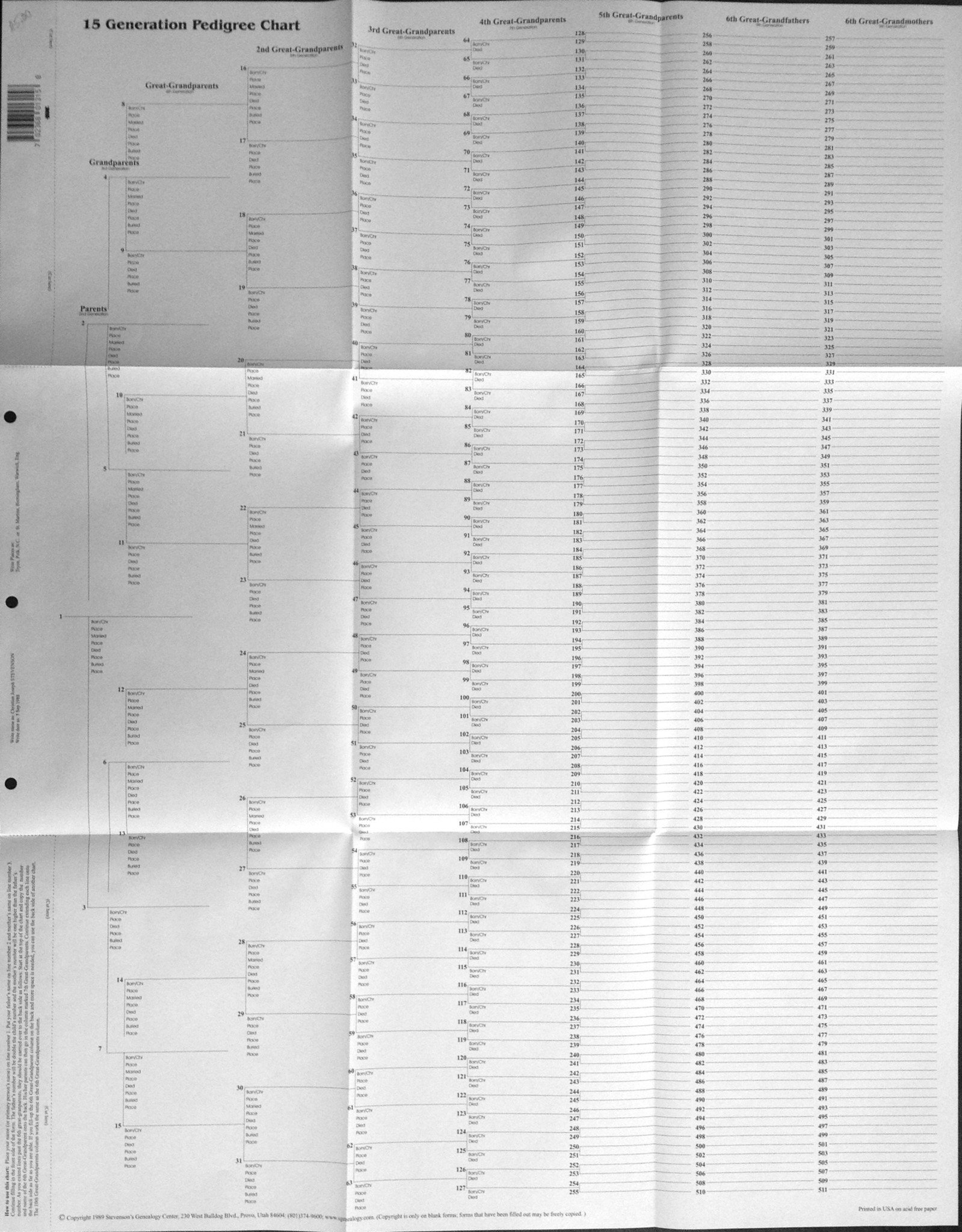 15 Generation Pedigree Chart - 10 pack