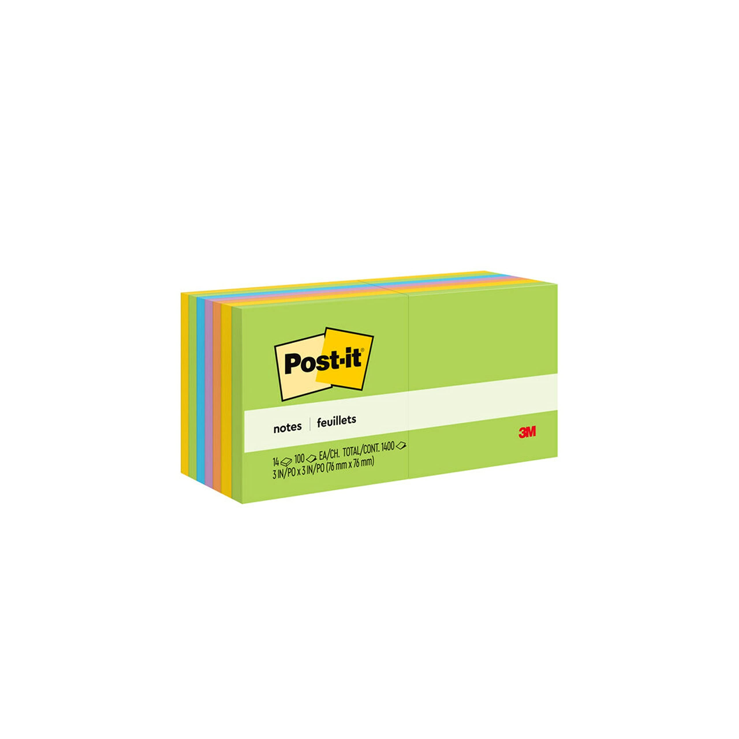 Post-it Notes, 3x3 in, 14 Pads, America's #1 Favorite Sticky Notes, Jaipur Collection, Bold Colors (Green, Yellow, Orange, Purple, Blue), Clean Removal, Recyclable (654-14AU)