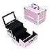 Ogima Mini Cosmetic Makeup Train Case with Mirror and Extendable Trays Portable Make Up Artist Organizer Kit Cosmetic Box (Pink)