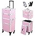 Ogima 4 in 1 Interchangeable Aluminum Rolling Makeup Case Cosmetic Train Box Easy Clean Extendable Trays (Large Pink)