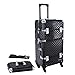 Seya 19.5 Inch Soft Nylon Professional Artist Rolling Wheeled Trolley Makeup Train Case Cosmetic Organizer W/ 8 Drawers (Black Quilted)