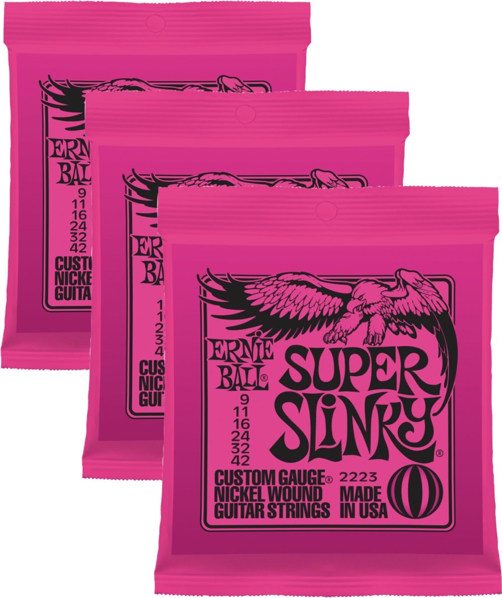 Ernie Ball, Super Slinky Electric Guitar Strings 9-42 (Pack of 3 Sets) (2223x3)