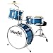 Mendini by Cecilio 16 inch 3-Piece Kids/Junior Drum Set with Adjustable Throne, Cymbal, Pedal & Drumsticks, Metallic Blue, MJDS-3-BL