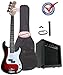 Crescent Electric Bass Guitar Starter Kit - Transparent Red Color (Includes CrescentTM Digital E-Tuner)