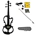 YMC SEV-2BK Full-Size 4/4 Solid Wood Electric/Silent Violin with Ebony Fittings Complete Kit (Hard Case, Bow, Electronic Tuner, Headphones, Shoulder Rest, Mute, Pinkinest, Extra Strings, Rosin), Black