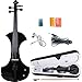 ADM 4/4 Full Size Black Electric/Silent Violin Outfit, Playwood Construction with Ebony Fittings - High Gloss Violin Package(with Violin Hard Case, Bow, Rosin, EQ)
