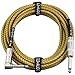GLS Audio 20 Foot Guitar Instrument Cable - Right Angle 1/4 Inch TS to Straight 1/4 Inch TS 20 FT Brown Yellow Tweed Cloth Jacket - 20 Feet Pro Cord 20' Phono 6.3mm - SINGLE