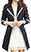 Uget Women's Elegant Long Trench Coat Jacket with Belt Black L