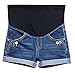 MTRNTY Women's Maternity Elastic Adjustable Waist Denim Shorts Blue Jeans Pocket, Large
