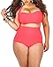 Lalagen Women's High Waist Halter Bandeau 2 Piece Plus Size Bikini Swimsuit red XXL