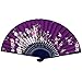 Newstarfactory Purple Flowers Painting Design Blue Bamboo Folding Hand Held Fan