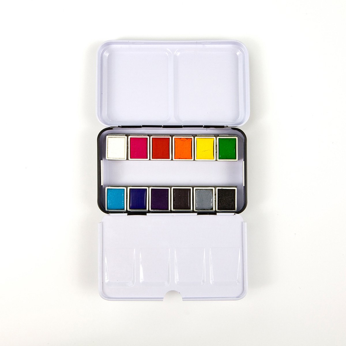 Art Alternatives Pocket Watercolor Set of 18 Half Pans of Brilliant Transparent Paint and 1 Round Brush