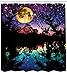 Ambesonne Purple Shower Curtain, Lake Moonlight Stars in Night Sky with Trees Contemporary Modern Design, Cloth Fabric Bathroom Decor Set with Hooks, 70" Long, Dark Colors