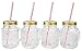 Lily's Home Old Fashioned Mason Jar Mugs with Handles, Tin Lids and Matching Reusable Plastic Straws, Great as Old Fashion Drinking Glasses at BBQs and Parties, Clear (16 oz. Each, Set of 4)