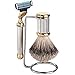 ShaveMaxx, Shaving Gift Set, Stand, Safety Razor (Long Handled), 100% Badger Brush, Blades, Blade Guard, Polishing Towel, Well Presented Gift Box,