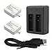 EforTek Replacement Battery (2-Pack) and Dual USB Charger kit for Garmin 361-00080-00 and Garmin Virb X and Virb XE