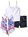 Kensie Baby Girls' 3 Piece Cami, Tulle Chiffon Top with Denim Short, White/Pink/Blue, 12 Months