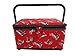 Medium Rectangle Sewing Basket Box with Tray Pincushion 11"x7"x6.5" (Medium 11"X7"X6.5", Red with Sewing Machines)