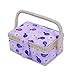 Classic Floral Print Fabric Sewing Basket Portable Home Storage Box ,84 Pcs Sewing Kit Accessories,7.6” x 5.1” x 3.9”(Purple)