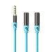 PlugLug - 3.5mm Audio Splitter Cable (Blue) 3.5mm Male to two Port 3.5mm Female - Compatible with iPhone, Samsung, LG Smartphones, Tablets, MP3 players, Bluetooth Speakers, and with Mic function