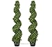 TWO Pre-potted 4' Spiral Boxwood Artificial Topiary Trees. In Plastic Pot