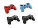4in1 Combo Set Black x 2, Blue, Red Soft Silicone Skin Protector Cover Case Combo for Sony Playstaion PS3 Controller