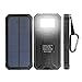 Solar Charger Battery Matone Portable 10000mAh Solar Battery Charger Shockproof with Light Dual USB Output Solar Powered Phone Charger for iPhone, iPod, iPad, Samsung, HTC, GPS & Gopro Camera (Blue)