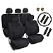 Leader Accessories Universal 17pcs Combo Pack Auto Solid Black Car Cloth Seat Covers Set - Airbag Compatible - Front Low Back,with Shoulder Pads