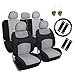 Leader Accessories Sports Fabric Cloth 17pcs Auto Car Seat Covers Universal Fit Full Set with Airbag & Gray/Black