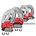 FRONT + REAR Powder Coated Red [4] Calipers + [4] Rotors + Quiet Low Dust [8] Ceramic Pads Performance Kit