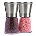 Salt and Pepper Mill Set of 2, Brushed Stainless Steel and Strong Long Glass Body, Hand Ceramic Mechanism, Top Lid Maintains Spice Freshness, Spices are not Included