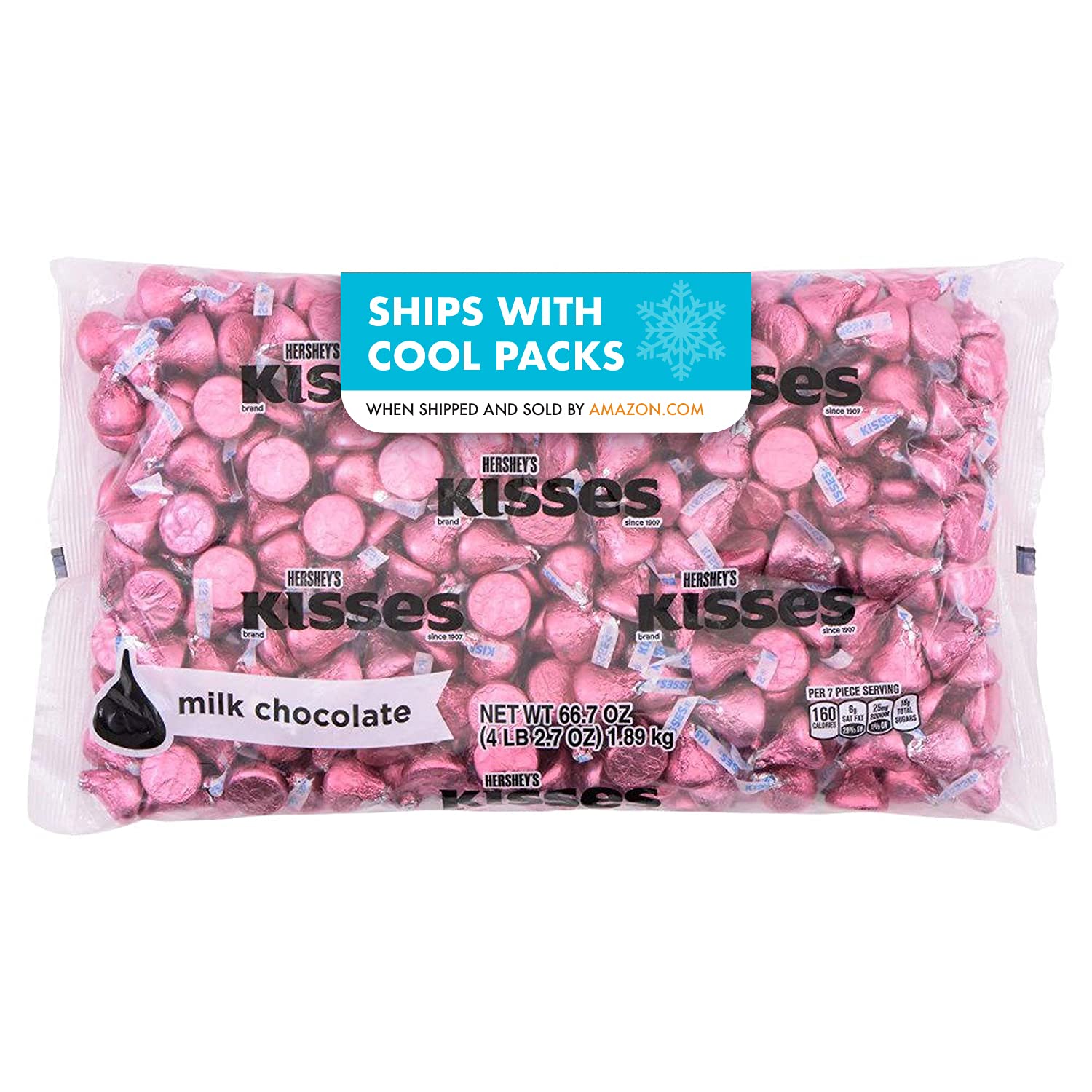 HERSHEY'S KISSES Pink Foils Milk Chocolate Candy, Bulk, 66.7 oz Bulk Bag