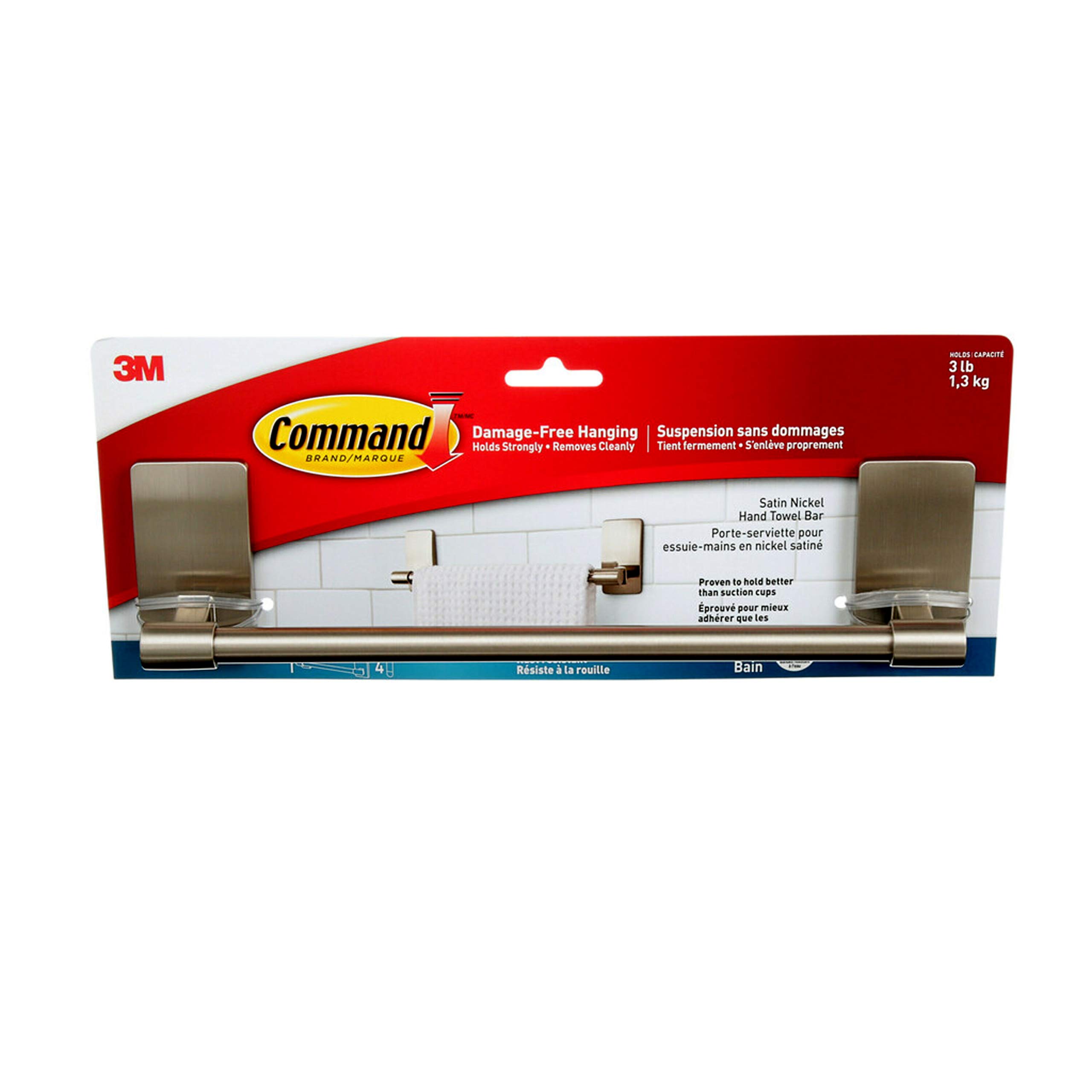 Command Hand Towel Bar, Satin Nickel, 1-Towel Bar, 4-Water-Resistant Strips, Organize Damage-Free