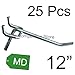 12" Medium Duty Pegboard Hooks - 25 Pieces - Straight Cut End - Zinc Plated - Fits 1/8" and 1/4" pegboard. Ideal for Tools and Products